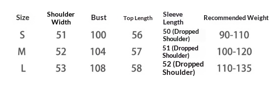 Sizes: S, M, L